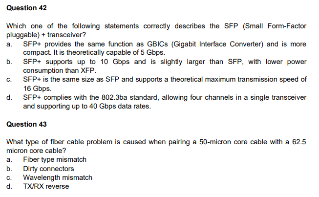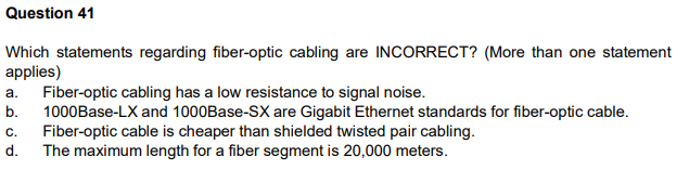 Solved Question 41 Which Statements Regarding Fiber Optic Chegg Com